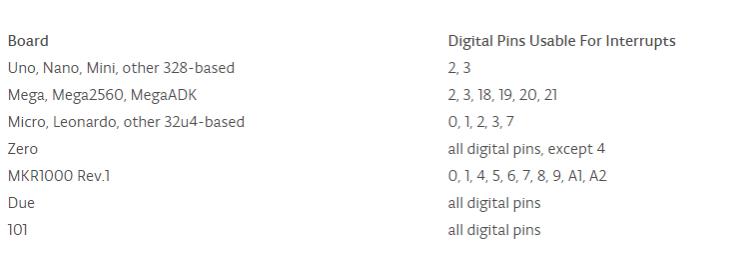تنها نکته ای که باید رعایت شه اینه که همه پینها رو میتونی به عنوان اینتراپت استفاده کنی . پین هایی که تو هر برد میتونی استفاده کنی ایناست: