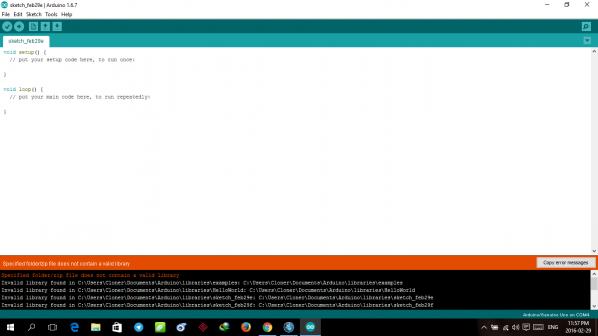 Invalid library found in C:\Users\Cloner\Documents\Arduino\libraries\exampl es: C:\Users\Cloner\Documents\Arduino\libraries\exampl es