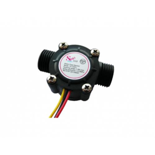 سنسورجریان آب از بدنه تمام پلاستیکی ساخته شده است.از اجزای داخلی این سنسور میتوان به رتور آب و سنسور اثر هال اشاره کرد.در این سنسور با عبور جریان آب از رتور ،رتور شروع به چرخش میکند.با تغییر شدت جریان آب ، سرعت چرخش رتور نیز تغییر میکند .سنسور اثر هال نیز متناسب با تغییر سرعت رتور خروجی پالس ایجاد میکند.