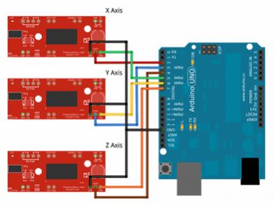 Description: The EasyDriver is a simple to use stepper motor driver, compatible with anything that can output a digital 0 to 5V pulse (or 0 to 3.3V pulse if you solder SJ2 closed on the EasyDriver). EasyDriver requires a 7V to 20V supply to power the motor and can power any voltage of stepper motor. The EasyDriver has an on board voltage regulator for the digital interface that can be set to 5V or 3.3V. Connect a 4-wire stepper motor and a microcontroller and you've got precision motor control! EasyDriver drives bi-polar motors, and motors wired as bi-polar. I.e. 4,6, or 8 wire stepper motors. On this version (v4.4) we fixed the silk error on the min/max adjustment.