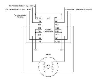 استفاده شده است. استپر تک قطبی یا دو قطبی با استفاده از پین های دیجیتال 8 ، 9 ، 10 و 11 در اتصال با یک دارلینگتون U2004 Array (برای استپرهای تک قطبی) یا یک SN75441NE H-Brige (برای دوقطبی) کنترل می شود.