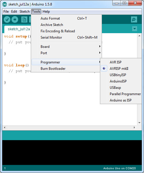 من تو تنظیمات برد nano رو انتخاب کردم و پروگرامر رو هم arduino isp