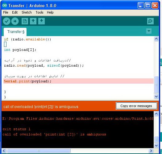 با سلام و خسته نباشید اقا میثم این کد گیرنده تو نرم افزار اردینو میذارم و برای verifyمیزنم خط اخرو ایراد میگیره
