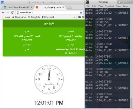 2- epoch time رو ار ماژول DS1307 میگیره و تاریخ شمسی رو ترمینال چاپ میکنه.