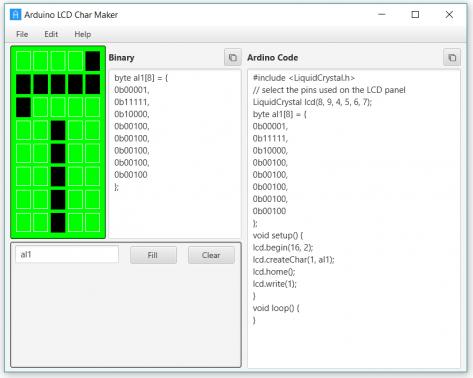 برای این منطور من یک نرم افزار نوشتم که میتونید باهش کارکتر دلخواه رو طراحی کنید و کد آردینیو متناسب رو براتون بسازه همچنین میتونید این کارکترها رو ذخیره و در اختیار بقیه قرار بدید