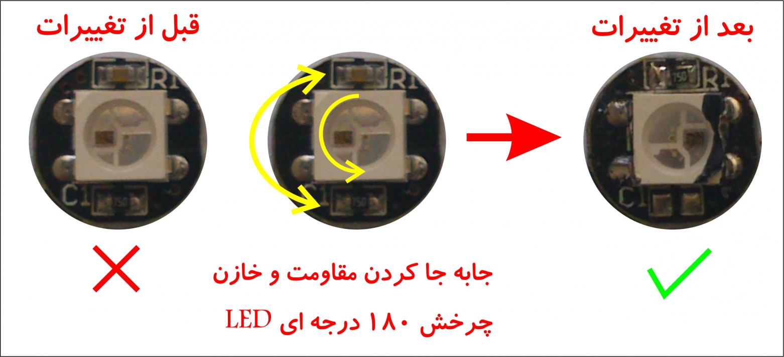 با دقت در روی عکس موجود در سایت فهمیدیم که ال ای دی هم باید 180 درجه بچرخه