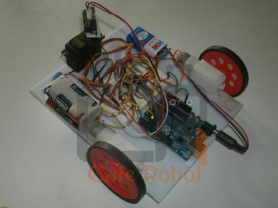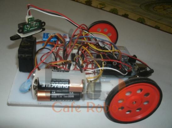 با توجه به این کد حرکت ربات به مسافت اندازه گیری شده توسط سنسور بستگی دارد. همانطور که قبلا گفته شد، عدد برگردانده شده توسط سنسور یک عدد بین 0 تا 1023 است. اگر این عدد کمتر از 500 باشد به این مفهوم است که مانعی در سر راه ربات وجود ندارد و ربات به حرکت مستقیم خود ادامه می دهد اما اگر این عدد بزرگتر یا مساوی با 500 باشد ربات باید به دنبال راستای جدیدی برای حرکت خود باشد زیرا به مانع نزدیک شده است. در ابتدا ربات متوقف شده و کمی به عقب بر می گردد، سروو کمی به سمت چپ می چرخد و سنسور فاصله ی جدید تا مانع رویروی خود را ثبت می کند، سپس سروو به سمت راست چرخیده و دوباره سنسور فاصله را از مانع مقابل خود ثبت می کند، این دو مقدار ثبت شده توسط سنسور با هم مقایسه می شوند و در آخر ربات به سمتی حرکت می کند که از مانع فاصله ی بیشتری دارد.