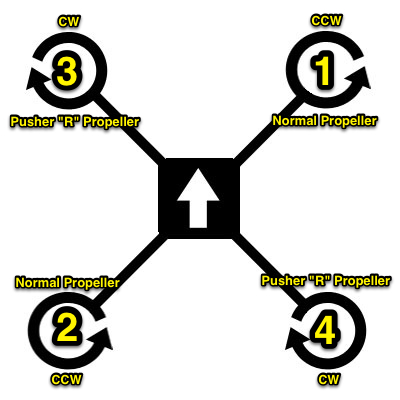 دو موتور به سمت عقربه های ساعت حرکت می کنند و دو موتور دیگر خلاف عقربه های ساعت