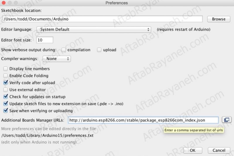 لینک زیر را در کادر Additional Board Manager URLs کپی پیست کنید.