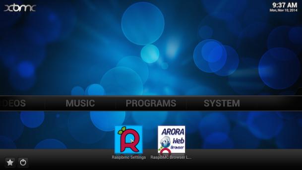 2.در این مرحله به رسپبری شناسانده می شود که گیرنده IR نصب شده است. برای این کار وارد تب "Programs" در منوی اصلی شوید و "RaspBMC Settings" را انتخاب کنید: