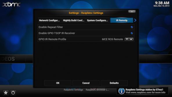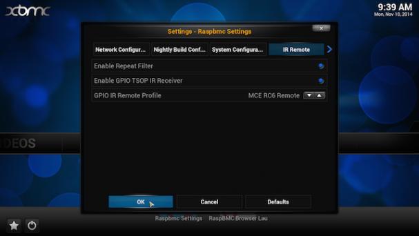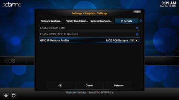 5.برای انتخاب نوع ریموت کنترل از منوی پایین "Enable GPIO TSOP IR receiver" گزینه "MCE RC6 Remote" را انتخاب کنید.