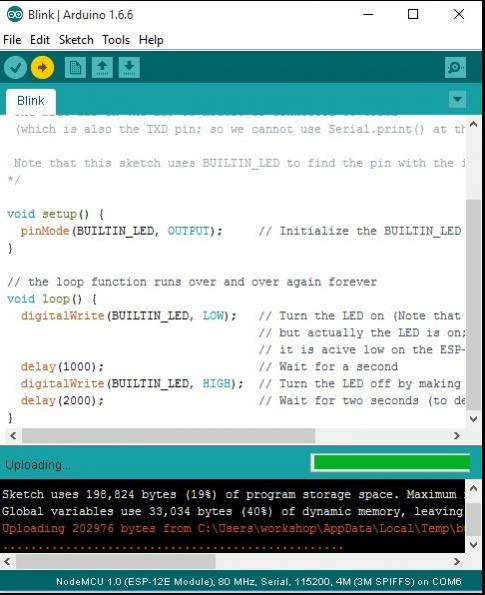 در حین آپلود LED آبی رنگی روی خود ماژول ESP8266 چشمک می زند.