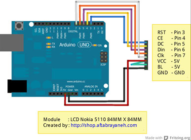 نمایشگر nokia 5110 84mm x 84mm + برد کمکی
