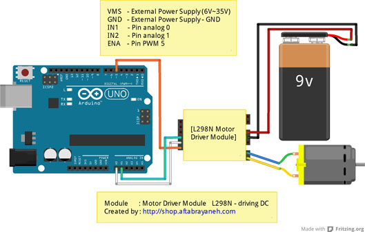 مثال آردوینو جهت راه اندازی موتور DC: