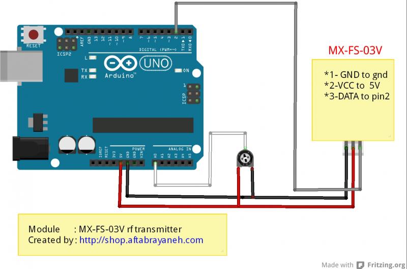 يكي از پراستفاده ترين مدارهاي الكترونيكي ، مدارهاي كنترل از راه دور ميباشد. روز به روز بر تعداد تجهيزاتي كه انتقال اطلاعات و كنترل را بصورت wireless انجام ميدهند افزوده ميشود . ماژولهاي فرستنده و گيرنده mx-fs-03v و mx-05v يكي از ساده ترين ماژولهاي انتقال اطلاعات به شمار ميروند . انتقال اطلاعات در اين ماژولها تنها از طريق 1 پين صورت ميپذيرد.و در مواردي كه از نظر تعداد پايه هاي آردوينو با محدوديت مواجه هستيم ، اين ويژگي ميتواند بسيار مفيد باشد.