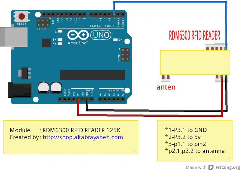 کارخوان RFID RDM6300 125KHz یک مینی ماژول برای خواندن کد ها از کارت ها و تگ های 125 کیلو هرتزی ( فقط خواندنی و یا قابل خواندن / نوشتن ) طراحی شده است و به راحتی می توانید از آن در پروژه خود در کنار آردوینو و یا هر میکروکنترلر دیگری استفاده نمایید.