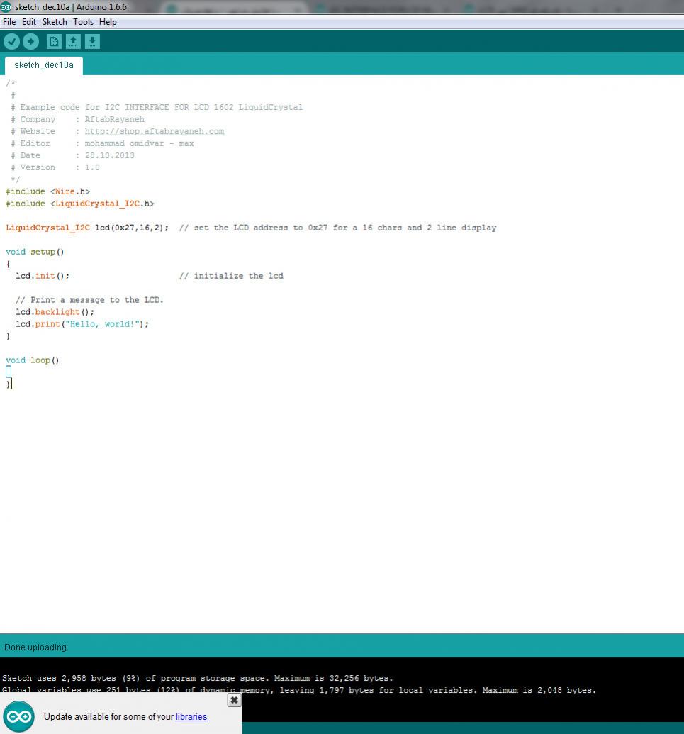 # Example code for I2C INTERFACE FOR LCD 1602 LiquidCrystal