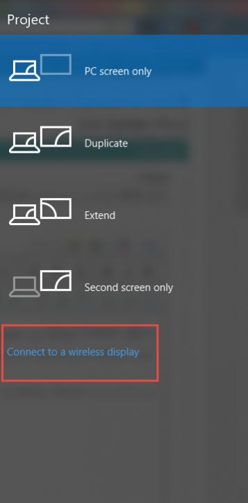 پس از آن با زدن کلیدهای win+p وارد محیط انتخاب نمایش شوید و گزینه Connect to wireless display را انتخاب کنید: