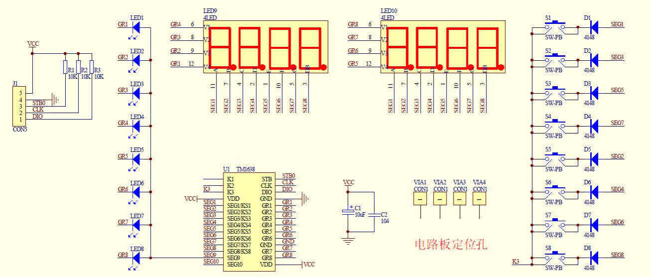 TM1638 panel (DATA, CLOCK STROBE);