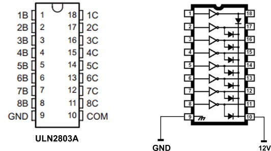 یکی از مزیت های ULN2003 و ULN2803 این هست که دیود مناسب داخلی داره و این امکان رو میده که ولتاژ القا شده از برگشت سیم پیچ(رله؛موتور و ...) رو دفع می کنه و در واقع خروجیش در مقابل این ولتاژ محافظت شده هست.
