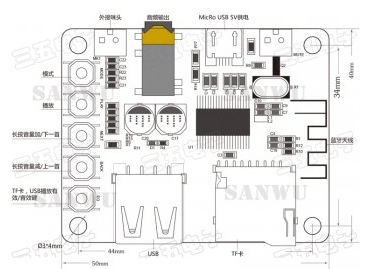 ماژول پخش فایل های صوتی دارای ورودی های بلوتوث / usb / tf card به همراه کلید های کنترلی
