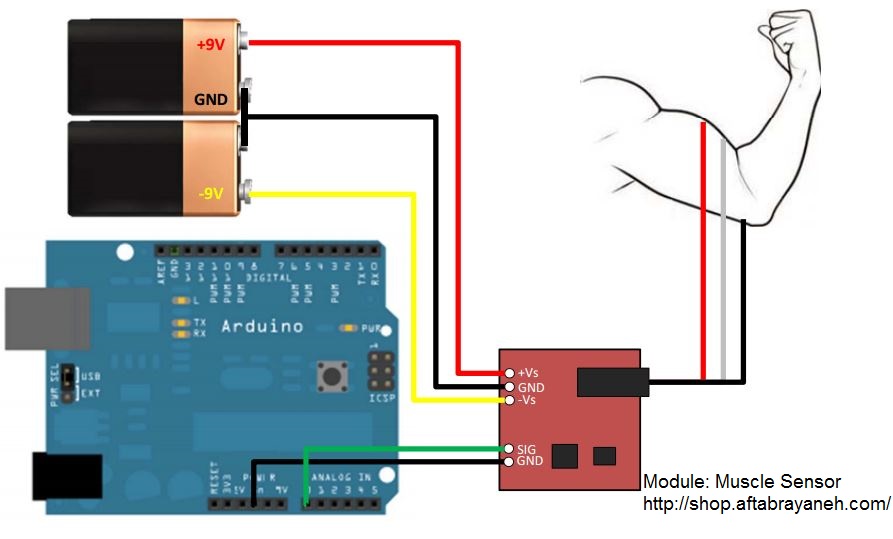 از دیرباز اندازه گیری فعالیت ماهیجه با شناسایی پتانسیل الکتریکی ، مانند یک برق نگار ماهيچه (EMG) برای تحقیقات پزشکی بکار گرفته می شد.اگرچه از گذشته تا کنون با کوچک و جمع شدن میکروکنترلرهای قویتری و مدارات مجتمع ،مدارات EMG و سنسورها راه خود را برای انواع سیستم های کنترل یافته اند. ماژول سنسور عضله در واقع سیگنالهای الکتریکی را گرفته و به دستگاه مورد نظر ارائه می دهد.این سنسور فعالیت الکتریکی یک ماهیچه را بصورت فیلترشده و اصلاح شده اندازه گیری میکند. خروجی 0-Vs ولت بستگی به میزان فعالیت ماهیچه انتخاب شده دارد که در آن Vs همان ولتاژ منبع تغذیه است. شما به آسانی می توانید با استفاده از این ماژول به همراه آردینو و چسباندن تعدادی الکترود ،ولتاژ خروجی و انعطاف پذیری عضلات را بخوانید.