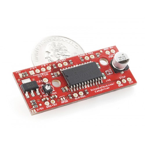 ماژول EasyDriver دارای یک درایور استپر موتور ساده سازگار است این ماژول با همه چیز سازگار است! و می تواند پالس دیجیتال 0 تا 5V ( و یا 0 تا 3.3V درصورتی که اتصال SJ2 بر روی برد EasyDriver لحیم شود.) در خروجی ایجاد کند. این ماژول به 7V تا 20V منبع تغذیه برای راه اندازی موتور نیاز دارد و می تواند تغذیه هر ولتاژی از استپر موتور را فراهم کند. این ماژول دارای یک رگولاتور ولتاژ بر روی برد برای ارتباط دیجتال است که امکان تنظیم بر روی 5V و 3.3V را فراهم می آورد. با اتصال یک استپر موتور 4 سیمه و یک میکروکنترلر می توانید موتور را دقیق کنترل کنید. این ماژول موتور های دو قطبی نظیر استپر موتورهای 4، 6 و یا 8 سیمه و موتورهایی که همانند دوقطبی سیم کشی شده اند را راه اندازی کند. راه اندازی این ماژول به وسیله آردینو به راحتی امکان پذیر است.