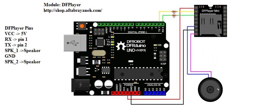 نمونه کد ساده از پخش MP3 توسط ماژول DFPlayer به همراه آردینو
