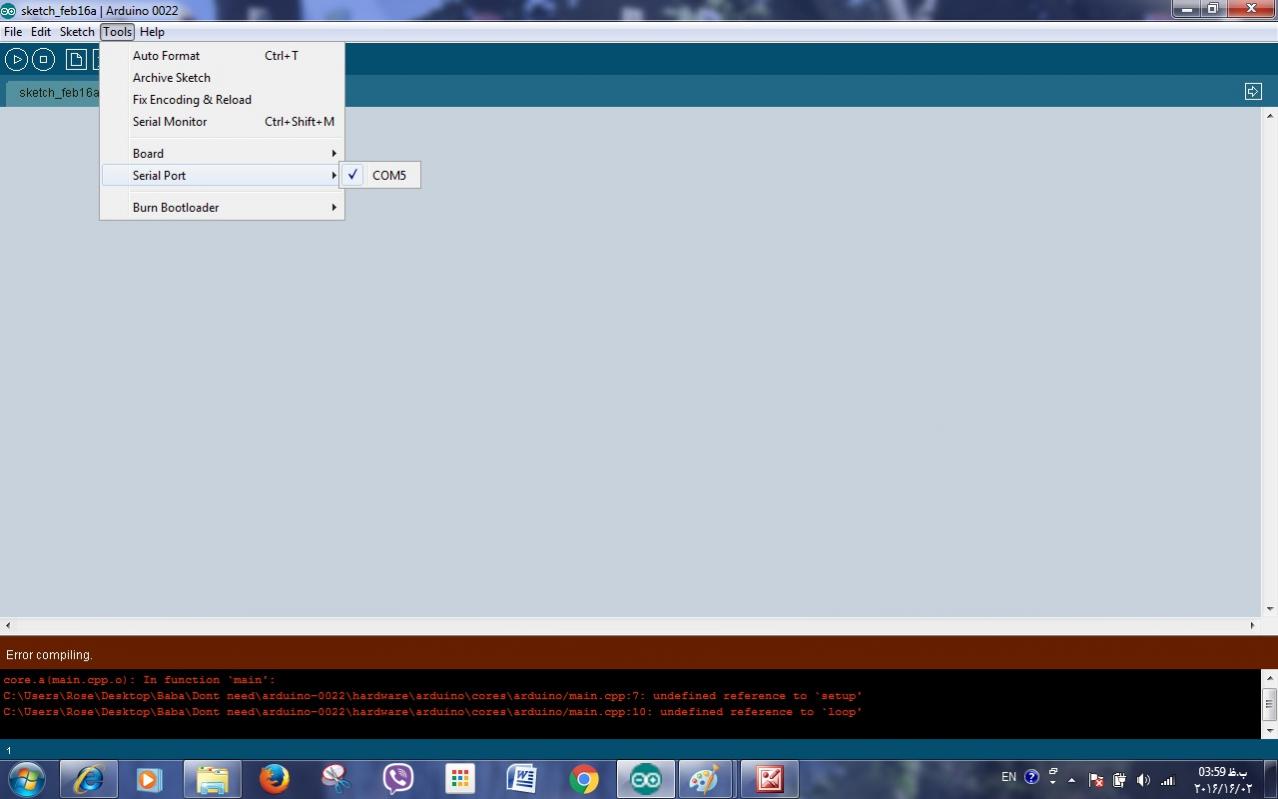 زیر صفحه که پورت تعریف شده باخط قرمز نوشته شدهundefined refrence to setup