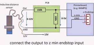 این سنسور به سادگی به جای انداستاپ minZ نصب میشه اما نکته مهم کالیبره کردن اون و سیم کشی اونه سیم کشی اون مثل عکس زیره که باید دو عدد مقاوت رو بهش وصل کنی و به جای سنسور محور z بکار ببری و نکته دیگه اینکه هیت بد باید تمام آلومینیومی باشه و یا اگر نیست از یه ورق آلومینیومی روی اون استفاده کنید و دقت کنید که استفاده از شیشه و... از قدرت سنسور کم میکنه و باید از سنسور های قوی تر استفاده کنید.