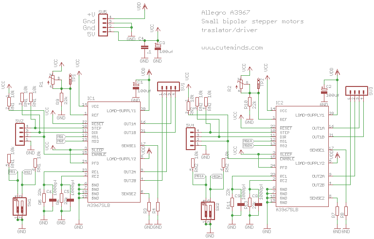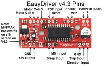 این درایوری (EasyDriver Stepper Motor Driver) که مدار من داره دوتا ورودی بیشتر نداره STEP و DIR ولی تا اونجا که من میدونم درایورای موتوهای پله ای چهارتا ورودی دارن حالا من این درایورو پیدا نمیکنم و مجبورم یه درایور دیگه به جاش استفاده کنم