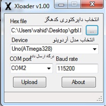 قسمت com port مربوط به درگاه ارسال داده میباشد توجه کنید که از مسیرcontrol panel - device manager- ports (com & lpt بررسی نمایید که پورت مربوط به آردوینوبر روی کدام پورت تنظیم شده است