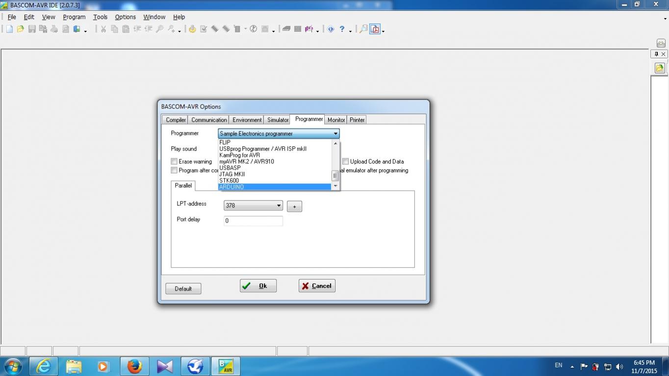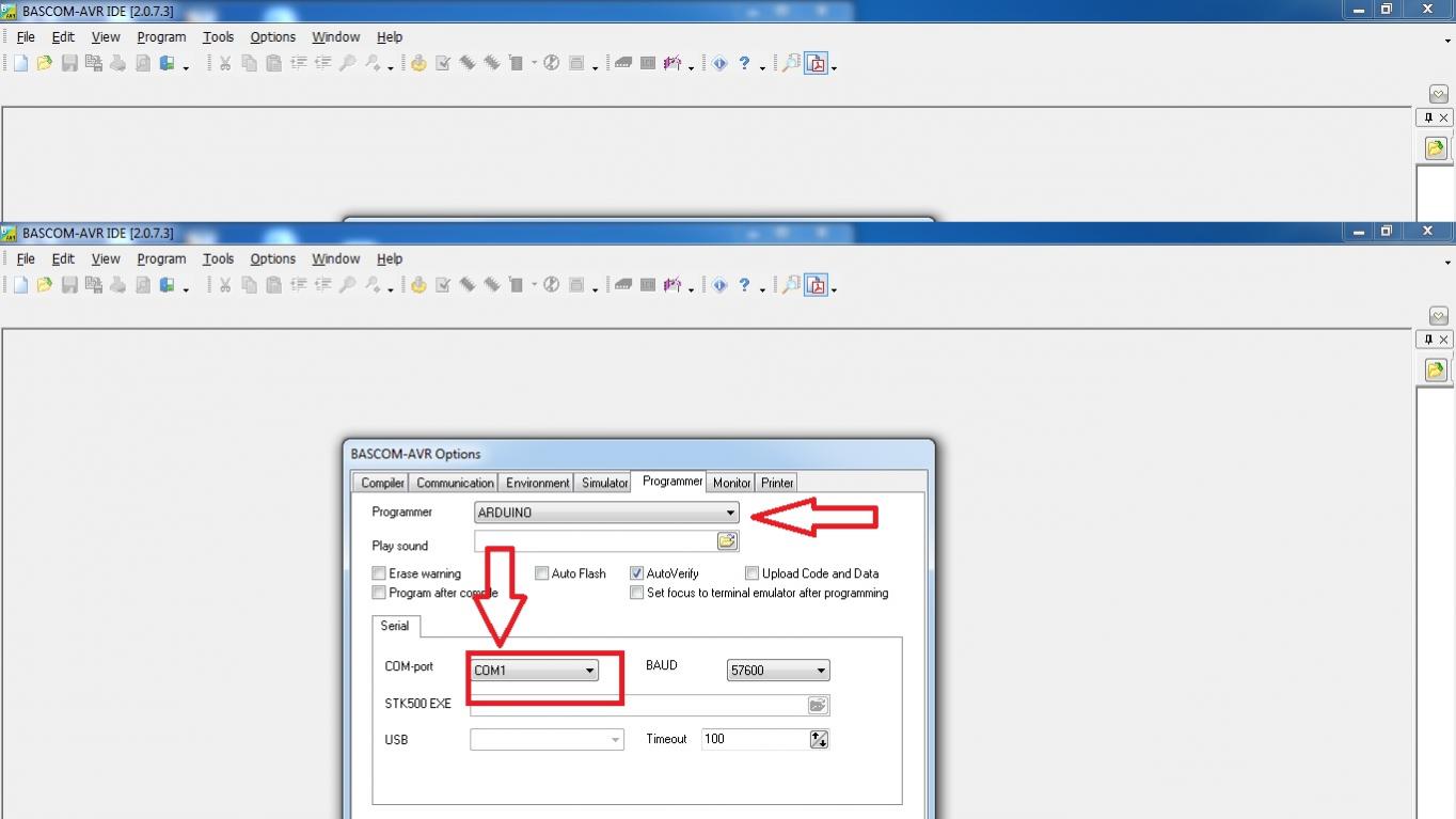 ابتدا باید پروگرمرم بسکام رو روی اردوینو تنظیم کنی (تو نسخه2.0.7.3 به بالا این بردها رو میشناسه). بعد از اون شماره پورت com که بردت بهش متصل هست رو وارد میکنی . حالا باید ببینی که میکروکنترلر روی بردت از چه نوعی هست و در رج فایل اسم اونو وارد کنی . پایه های ورودی و خروجی هم باید مطابق با دیتاشیت بردت باشن. فرکانس روهم بهتر بزاری روی همون 16 مگاهرتز پیش فرض خودش.فایل پیوست 1633فایل پیوست 1634