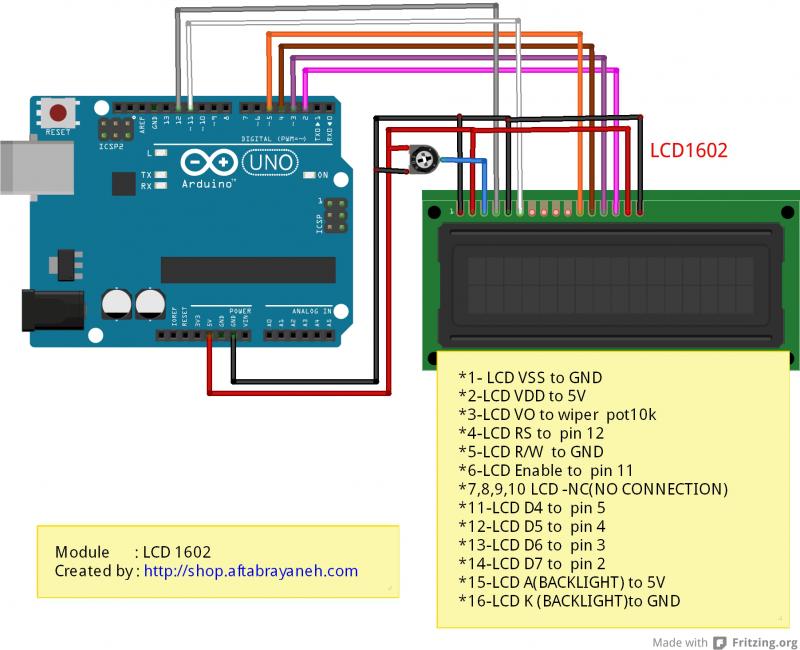 من ال سی دی 16*2 ماتریسی دارم که طبق همین عکسی که میذارم نصبش کردم برنامه هم ک کاملا مشخص شده