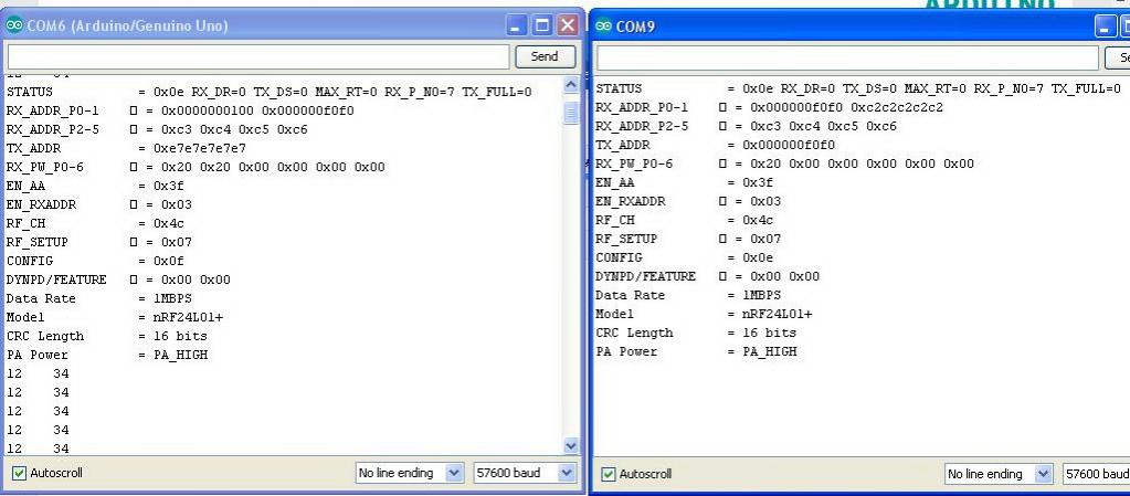 با سلام من دو تا ماژول NRF24L01+PA+LNA تایوانی تقویت شده گرفتم و برنامه ای که گفتین اپلود کردم و عکس سریال مانیتو براتون میذارم تو این حالت کار میکنه ولی تو برنامه های دیگه مثل لینک زیر https://howtomechatronics.com/tutori...4l01-tutorial/