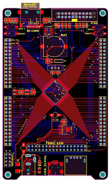 این برد با نرم افزار آلتیوم طراحی شده و چون با شماتیک نکشیدم گفتم باید تست بشه که از صحت آن مطمئن باشم تا کسی پولش را هدر نده و اینکه این هدر برد همه امکانات میکرو را دارد .انشا الله تو ماه رمضان فایلش را اشتراک خواهم گذاشت