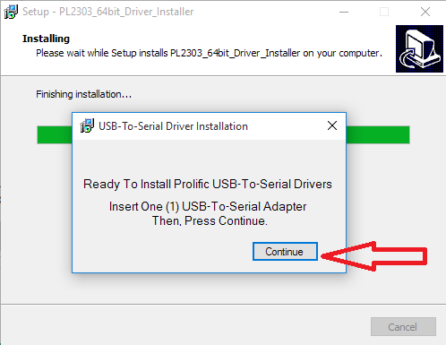 بایستی ابتدا مبدل را از کامپیوتر جدا می کنید و سپس برنامه را اجرا کنید تا تصویر continue بیاد اون موقع هست که بایستی مبدل را به پورت usb بزنید و بقیه ماجرا . . .