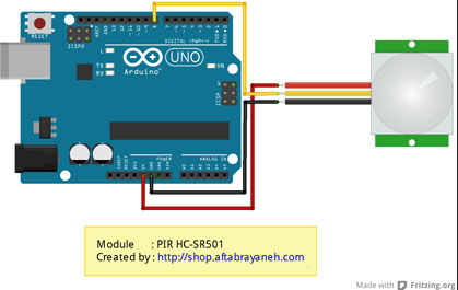 خروجی این سنسور تشخيص حركت می تواند مستقیماً به یکی از پین های دیجیتال آردوینو و یا میکروکنترلر شما متصل گردد و در صورت تشخیص هر نوع حرکتی توسط سنسور، مقداراین پین یک می گردد. دو پتانسیومتر موجود بر روی برد این امکان را به شما می دهد تا بتوانید حساسیت و زمان انتظار برای ایجاد تأخیر پس از تشخیص یک حرکت را تنظیم نمایید.