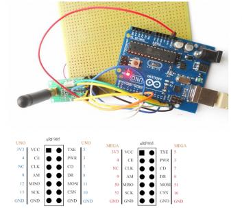 nRF905 یک IC فرستنده و گیرنده رادیویی مشابه nRF24L01 است. با این تفاوت که در فرکانس های 433/898/915MHZ به جای فرکانس 2.4Ghz عمل می کند. این ماژول دارای گستره ی فرکانسی و پین های IO بیشتری به نسبت nRF24L01 می باشد.اگرچه نرخ دیتای nRF905 در هوا تنها 50Kbps است که در مقایسه با nRF24L01 که 2Mbps است کمتر می باشد. ماژول nRF905 دارای 511 کانال در محدوده 422.4MHz – 473.5MHz با گام 100KHz روی باند 433MHz و 844.8MHz – 947MHz با گام 200KHz روی باند 868/915MHz می باشد. اما به دلیل همپوشانی هر کانال بر روی کانال مجاور خود در مجموع تنها 170 کانال قابل استفاده میباشد. این ماژول با در اختیار داشتن چیپ رادیویی Nordic VLSI NRF905 و حساسیت 100dBm وضریب اطمینان بالا می تواند بطور گسترده در موقعیت های مختلف به همراه برد های آردوینو در ارتباطات بیسیم مورد استفاده قرار گیرد.
