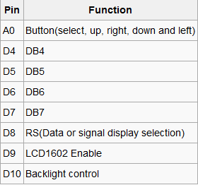 با این کد شما قارد خواهید بود تمام کلیدهای روی شیلد را تست کنید.کد://Sample using LiquidCrystal library #include <LiquidCrystal.h> /******************************************************* This program will test the LCD panel and the buttons Mark Bramwell, July 2010 ********************************************************/ // select the pins used on the LCD panel LiquidCrystal lcd(8, 9, 4, 5, 6, 7); // define some values used by the panel and buttons int lcd_key = 0; int adc_key_in = 0; #define btnRIGHT 0 #define btnUP 1 #define btnDOWN 2 #define btnLEFT 3 #define btnSELECT 4 #define btnNONE 5 // read the buttons int read_LCD_buttons() { adc_key_in = analogRead(0); // read the value from the sensor // my buttons when read are centered at these valies: 0, 144, 329, 504, 741 // we add approx 50 to those values and check to see if we are close if (adc_key_in > 1000) return btnNONE; // We make this the 1st option for speed reasons since it will be the most likely result // For V1.1 us this threshold if (adc_key_in < 50) return btnRIGHT; if (adc_key_in < 250) return btnUP; if (adc_key_in < 450) return btnDOWN; if (adc_key_in < 650) return btnLEFT; if (adc_key_in < 850) return btnSELECT; // For V1.0 comment the other threshold and use the one below: /* if (adc_key_in < 50) return btnRIGHT; if (adc_key_in < 195) return btnUP; if (adc_key_in < 380) return btnDOWN; if (adc_key_in < 555) return btnLEFT; if (adc_key_in < 790) return btnSELECT; */ return btnNONE; // when all others fail, return this... } void setup() { lcd.begin(16, 2); // start the library lcd.setCursor(0,0); lcd.print("Push the buttons"); // print a simple message } void loop() { lcd.setCursor(9,1); // move cursor to second line "1" and 9 spaces over lcd.print(millis()/1000); // display seconds elapsed since power-up lcd.setCursor(0,1); // move to the begining of the second line lcd_key = read_LCD_buttons(); // read the buttons switch (lcd_key) // depending on which button was pushed, we perform an action { case btnRIGHT: { lcd.print("RIGHT "); break; } case btnLEFT: { lcd.print("LEFT "); break; } case btnUP: { lcd.print("UP "); break; } case btnDOWN: { lcd.print("DOWN "); break; } case btnSELECT: { lcd.print("SELECT"); break; } case btnNONE: { lcd.print("NONE "); break; } } }